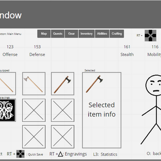 For this project, I decided to try to apply UX principles to fixing problems that I identified in older Assassin's Creed games to Assassin's Creed Valhalla that was announced in April 2020. I had started work on this project on June 24th, 2020 so this project was started before any UI had been shown in later Ubisoft forwards. However, I was not necessarily focusing on predicting what the specific UI art would look like exactly nor what mechanics would be implemented. I was more trying to address certain issues that existed in previous titles and correcting them for the future to make the Character Menu more user-friendly based on assumptions of what features may be in the new game.